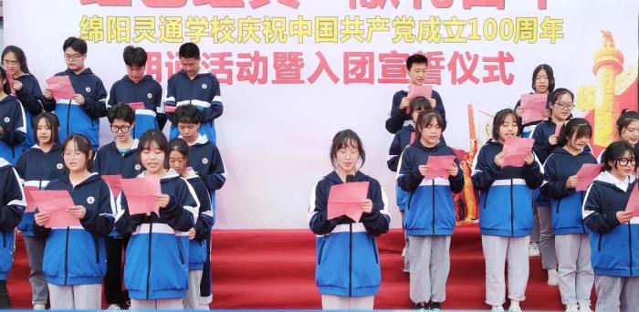 2021年5月,绵阳灵通学校开展“红色经典,献礼百年”主题朗诵暨入团宣誓活动,为建党百周年献礼,诵红色经典,铭青年之志,做有担当的灵通学子。